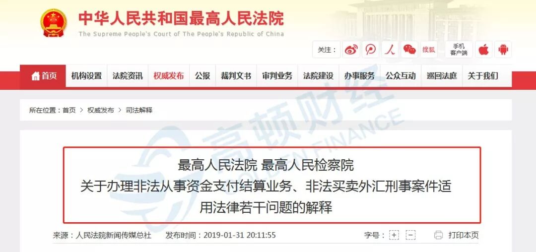 为依法惩治非法从事资金支付结算业务、非法买卖外汇犯罪活动,维护金融市场秩序,法释〔2019〕1号就办理非法从事资金支付结算业务、非法买卖外汇刑事案件适用法律的若干问题做出了解释。