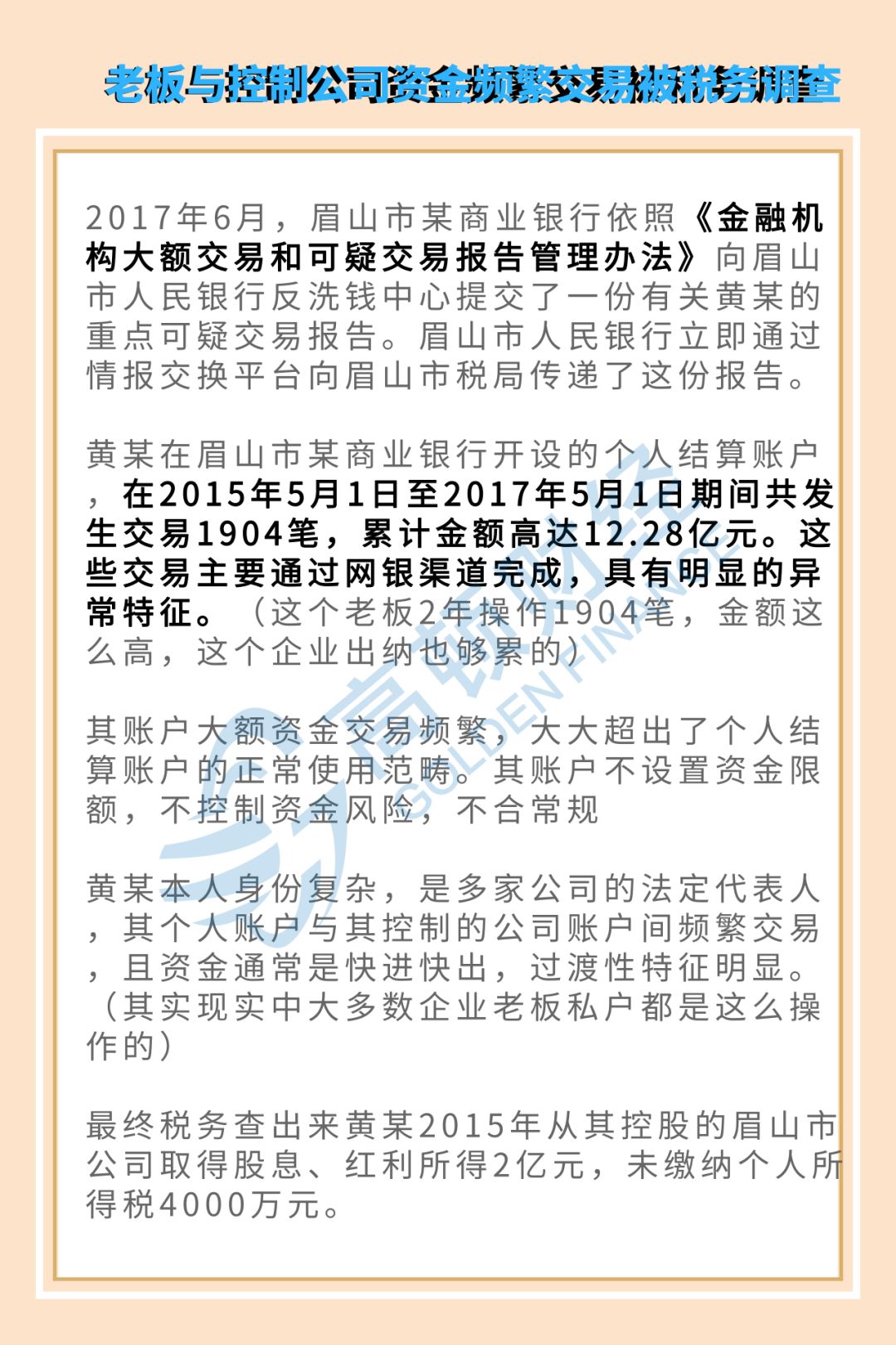 这一条主要针对的是企业,所以会计工作人员一定要注意!最后,提醒各位老板、会计,一定要小心转账问题,千万不要存在侥幸心理,现在税局和银行信息同步,违规很容易被发现……想要节税应采取合法合规途径,而不是走私账逃税漏税,可以给大家一个案例参考。